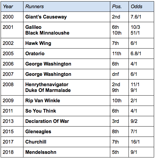 They did have one, however, in the shape of Mendelssohn – though perhaps it is entirely appropriate that, after a star-crossed campaign, the son of Scat Daddy should be retired before running in the race that may well have suited him better than any of the others he had been asked to compete in during a punishing 3-year-old season.