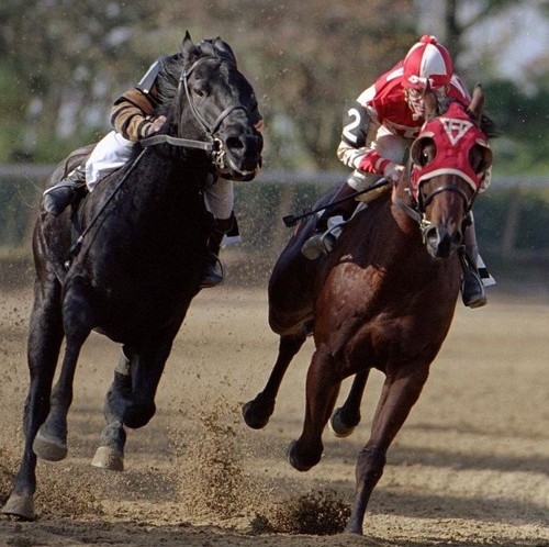 Once past the description of War Admiral as a huge beast that towered over his opponent (he was only 15.2hh) and the use of Keeneland disguised as Pimlico, the race is practically a shot-for-shot recreation, complete with vivid, close-up action of Gary Stevens (as George Woolf) and Chris McCarron (playing Charlie Kurtsinger) aboard their movie horses at near racing speed.